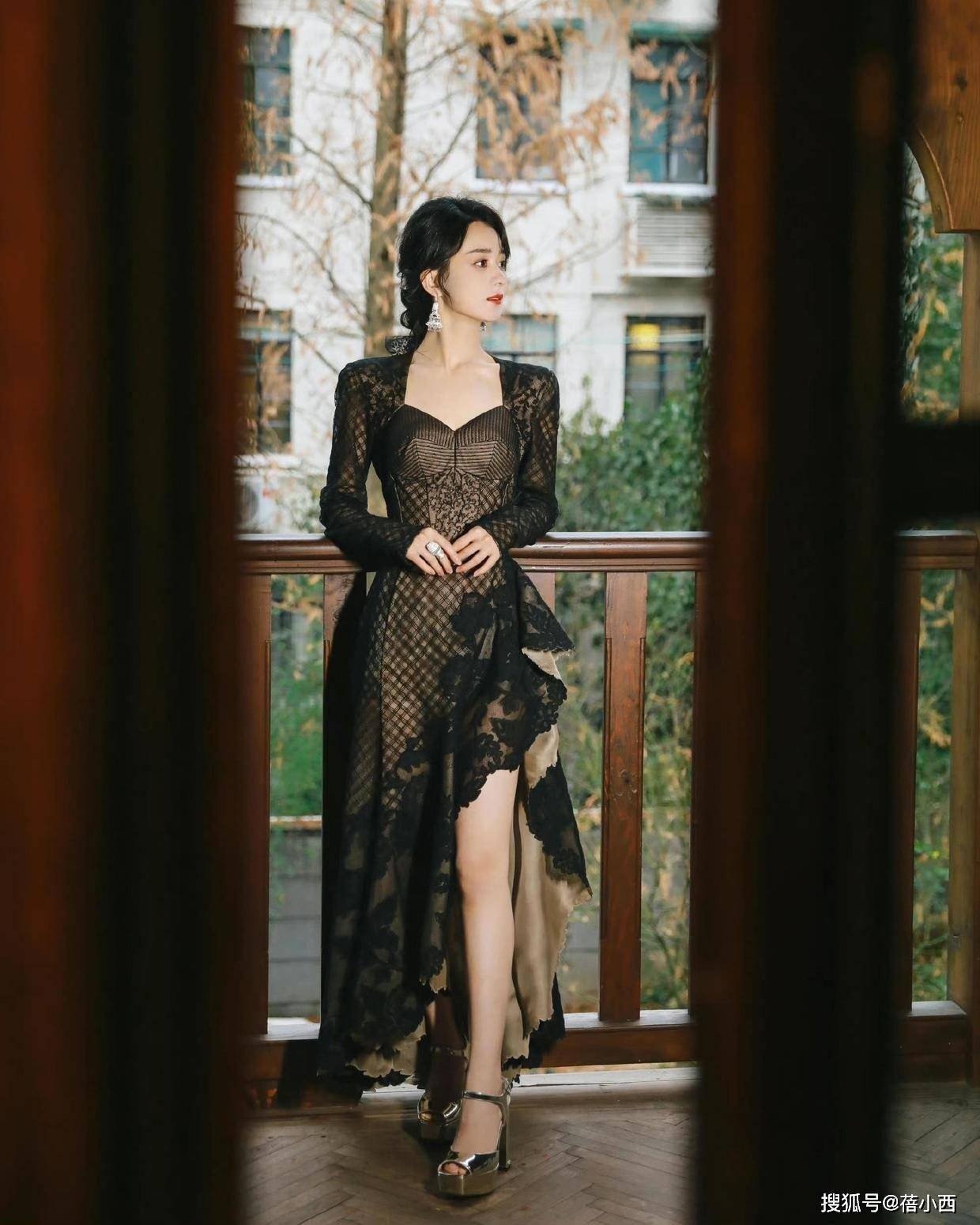 想要展现性感魅力,赵丽颖选择了黑色半透视连衣裙,设计巧妙地结合了透视元素和花纹装饰,性感又不失优雅。黑色一直是经典中的经典,吊带款式简约大气,不仅时髦且非常适合成性,轻松驾驭。