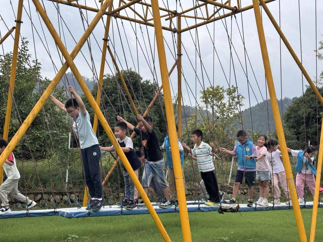 近日,位于合村乡后溪村的竹溪探险乐园里,潺潺溪水与欢笑声交织成趣。翠竹掩映、青山环抱之间,全景玻璃水滑道、亲子无动力乐园等设施错落分布,一群研学团的孩子正在这里尽情探索自然野趣。